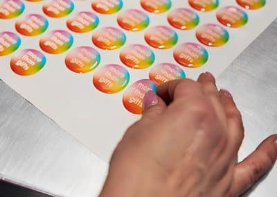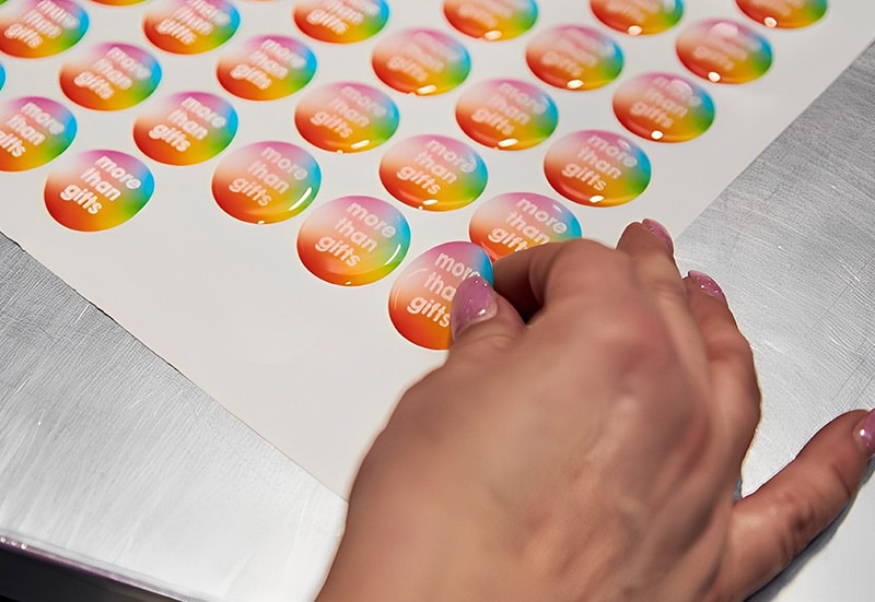 Domed labelling (also known as resin doming, 3D stickers, or gel badges) is a process where a clear, liquid polyurethane resin is applied over a printed label to create a durable, eye-catching, three-dimensional finish. This process adds a premium, high-gloss ‘bubble’ effect that enhances the visual appeal and longevity of branded merchandise. Benefit from a striking 3D visual appeal, tactile & premium finish and versatile application.